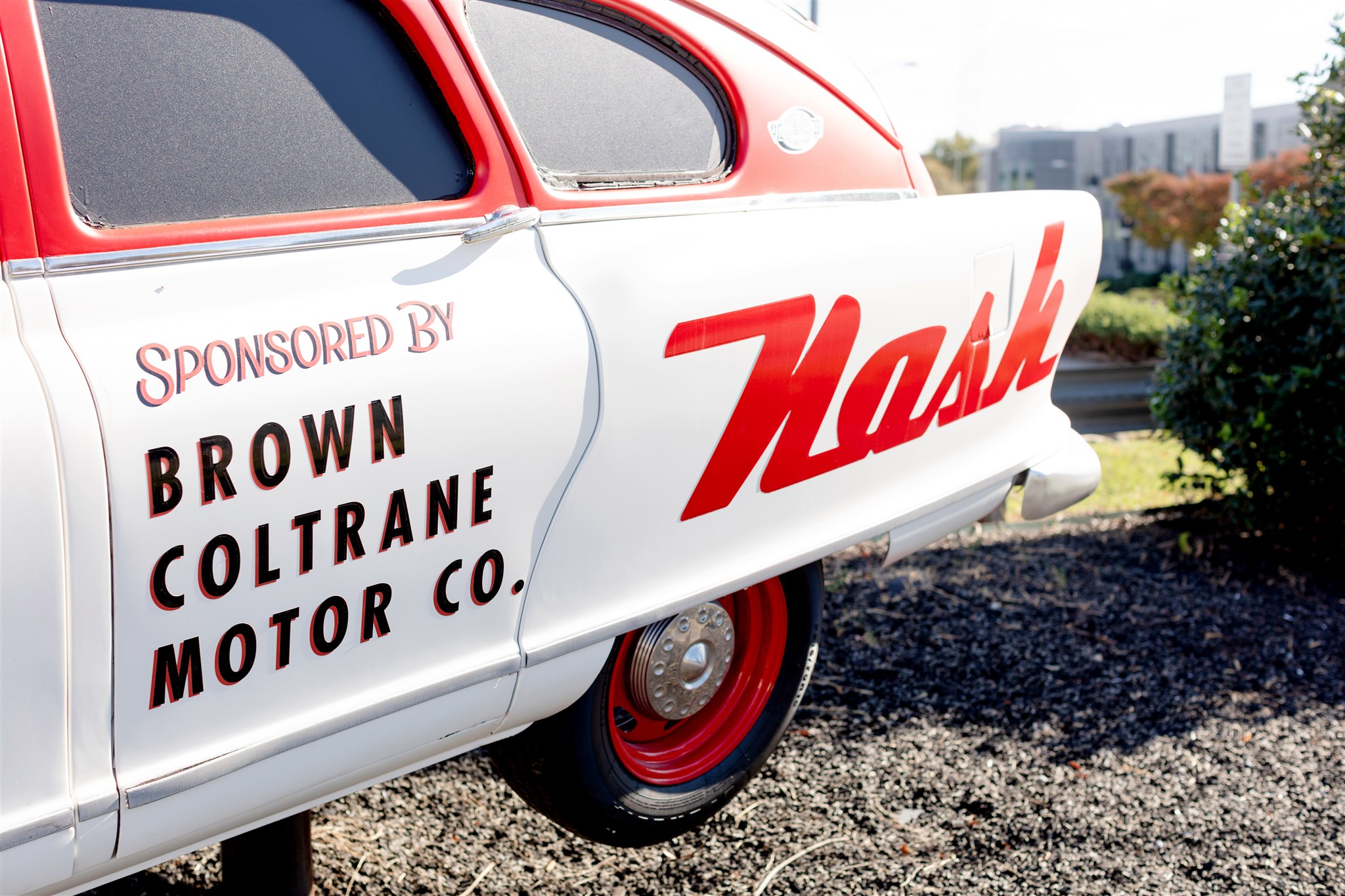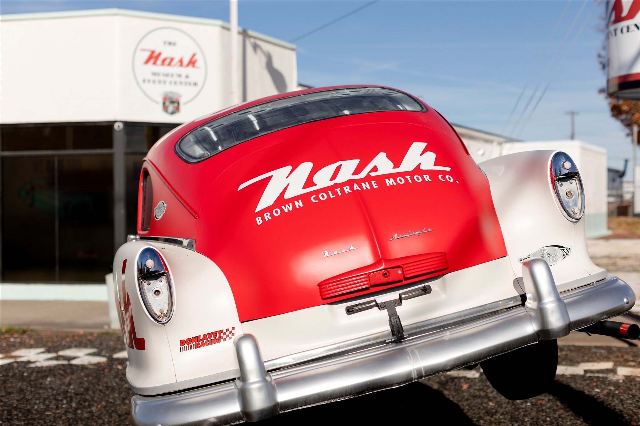 It was this legacy that inspired our team when restoring the Nash Airflyte’s exterior. We took design cues from the Nash Ambassadors once driven by legends like Bill France Sr. himself and Louise Smith, one of NASCAR’s pioneering female drivers. The car was painted in a bold red and white color scheme to match The Nash Event Center’s branding, blending vintage flair with modern identity.